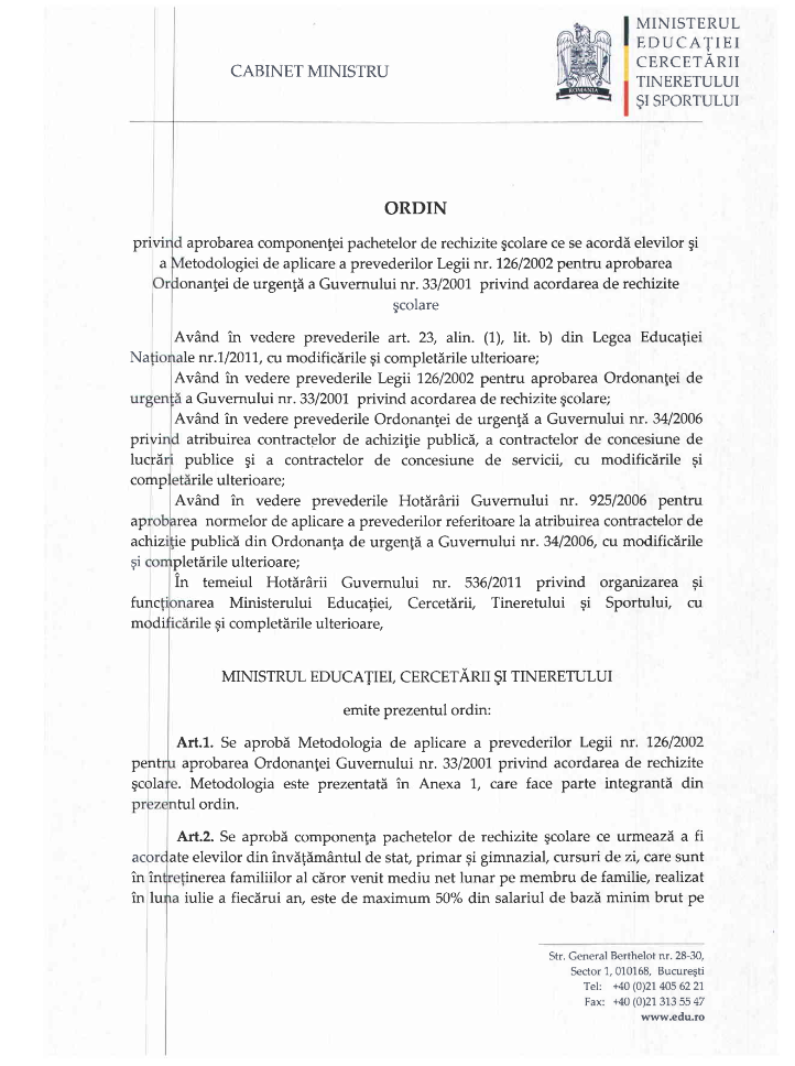 ACTE NECESARE LA DOSARUL DE RECHIZITE SCOLARE